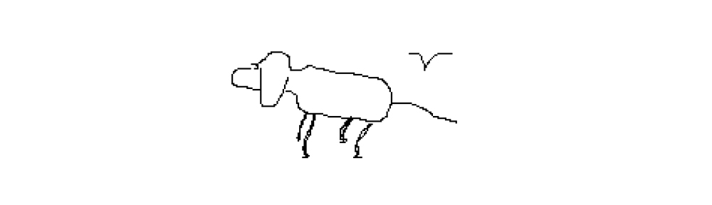 I was stumped. I was an author, not an artist. I was also growing impatient. I wanted to be done with it. I knew drawing with crayons or pencils would look amateurish, so using the computer technology available before the days of clip art and the internet, I drew a rudimentary picture of a four-legged animal that might have resembled a dog, at least to the type of person gifted at locating constellations and finding images of animals in clouds. Next to my dog, I drew a faceless, two-stroke picture of a bird—essentially a ‘V’ with curved tips. I centered the title in big bold letters above the drawing and printed it out on my dot matrix printer which made the big letters and the drawing of the dog look hideously pixelated. It didn’t matter. I had completed a book. My book. The next day I presented it to my teacher who promised that she’d share it with all her future classes. I promised I’d work more on the artwork. I never did. But I was satisfied. I was as published as I needed to be. The project had taken all my energy for two weeks, and I needed a rest.